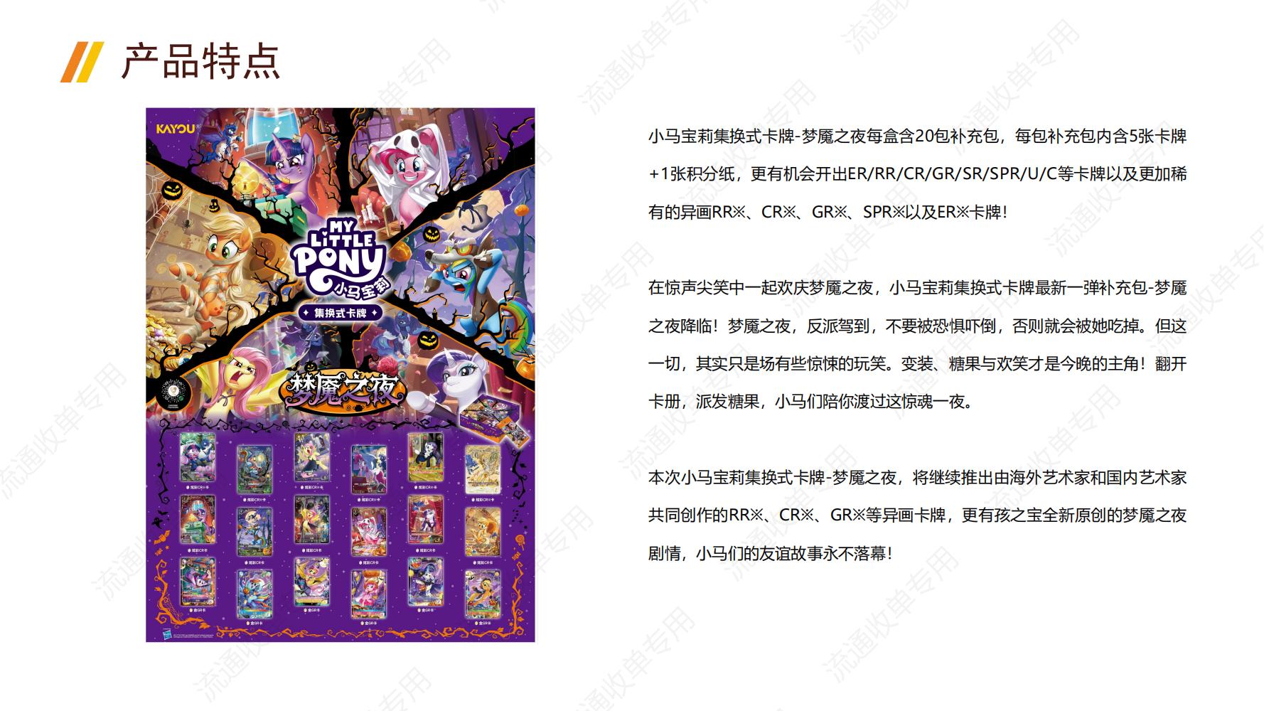 RR※、CR※、GR※等異畫卡牌,孩之寶更量身打造全新原創「夢魘之夜」劇情,從溫馨歡慶到驚險對抗,小馬友誼故事於卡牌間延續,每一張皆凝萃創意與心意。